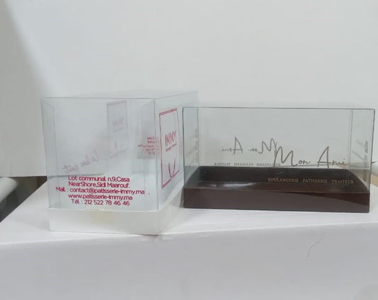 Boîte Cake Transparente Personnalisée – 2 Tailles Disponibles – Impression Logo & Couleurs